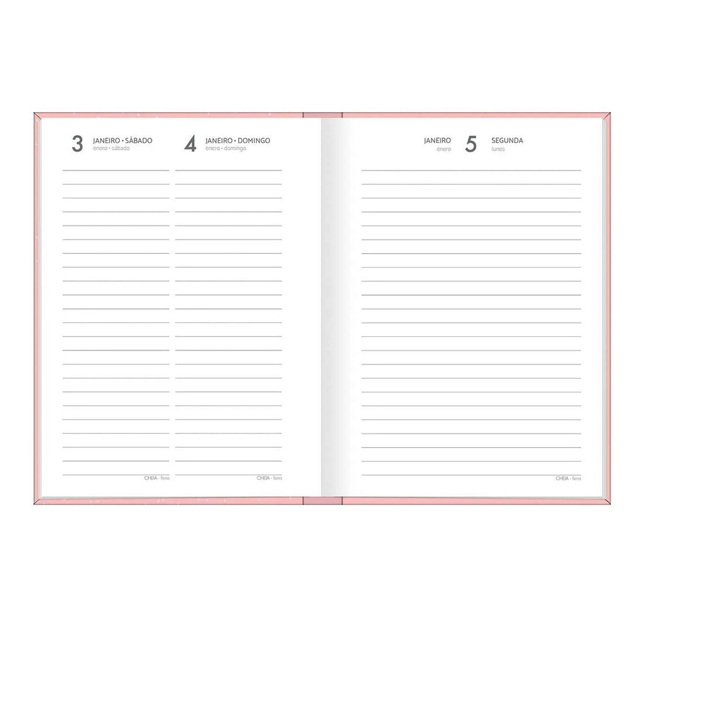 Uma agenda permanente não possui os dias da semana impressos. Isso torna o produto flexível e reutilizável, ideal para anotações e planejamento contínuo sem a limitação de um ano específico.
