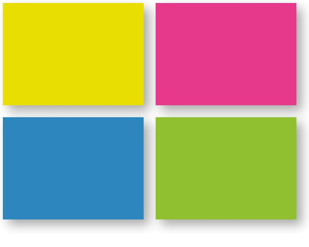 Embalagem em blister com 4 bloquinhos com 100 folhas, papel 75 g e adesivo acrílico.