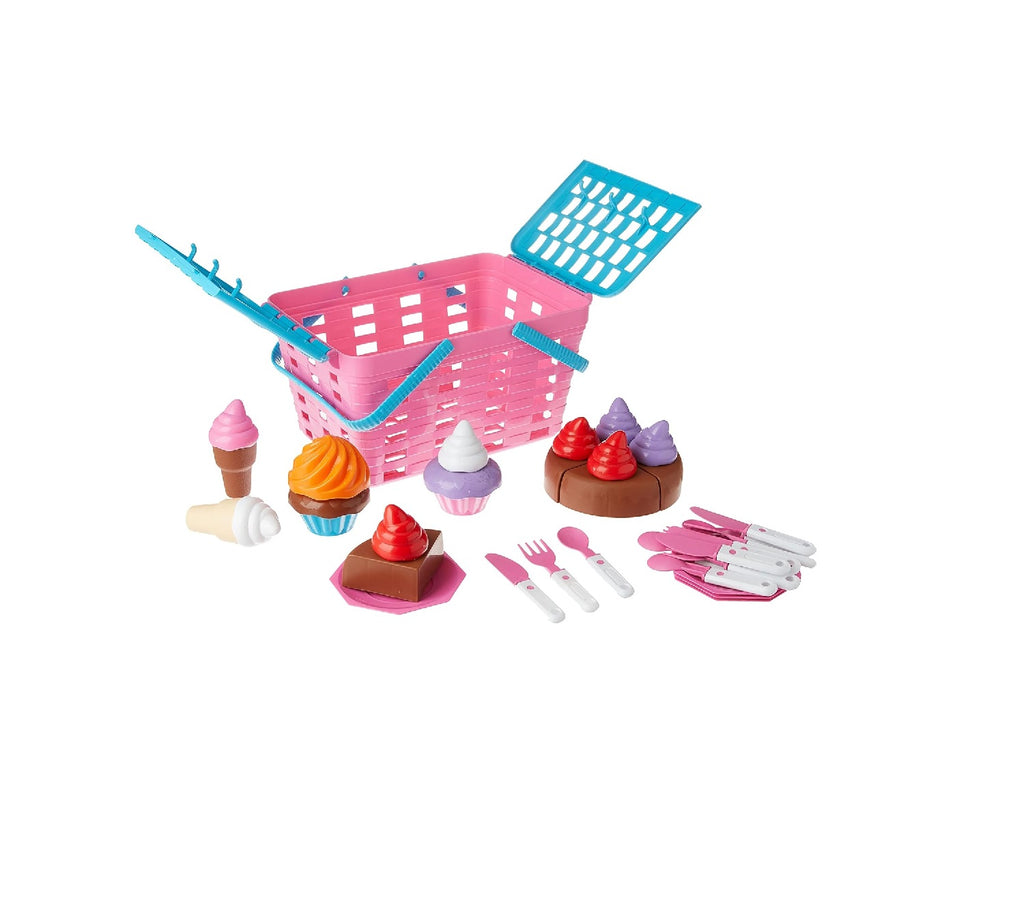 Essa incrível cesta acompanha vários acessórios, como pratinhos, sorvetinhos e bolos, para que o pic nic fique completo. As crianças vão poder usar a imaginação de montão para se divertir bastante!