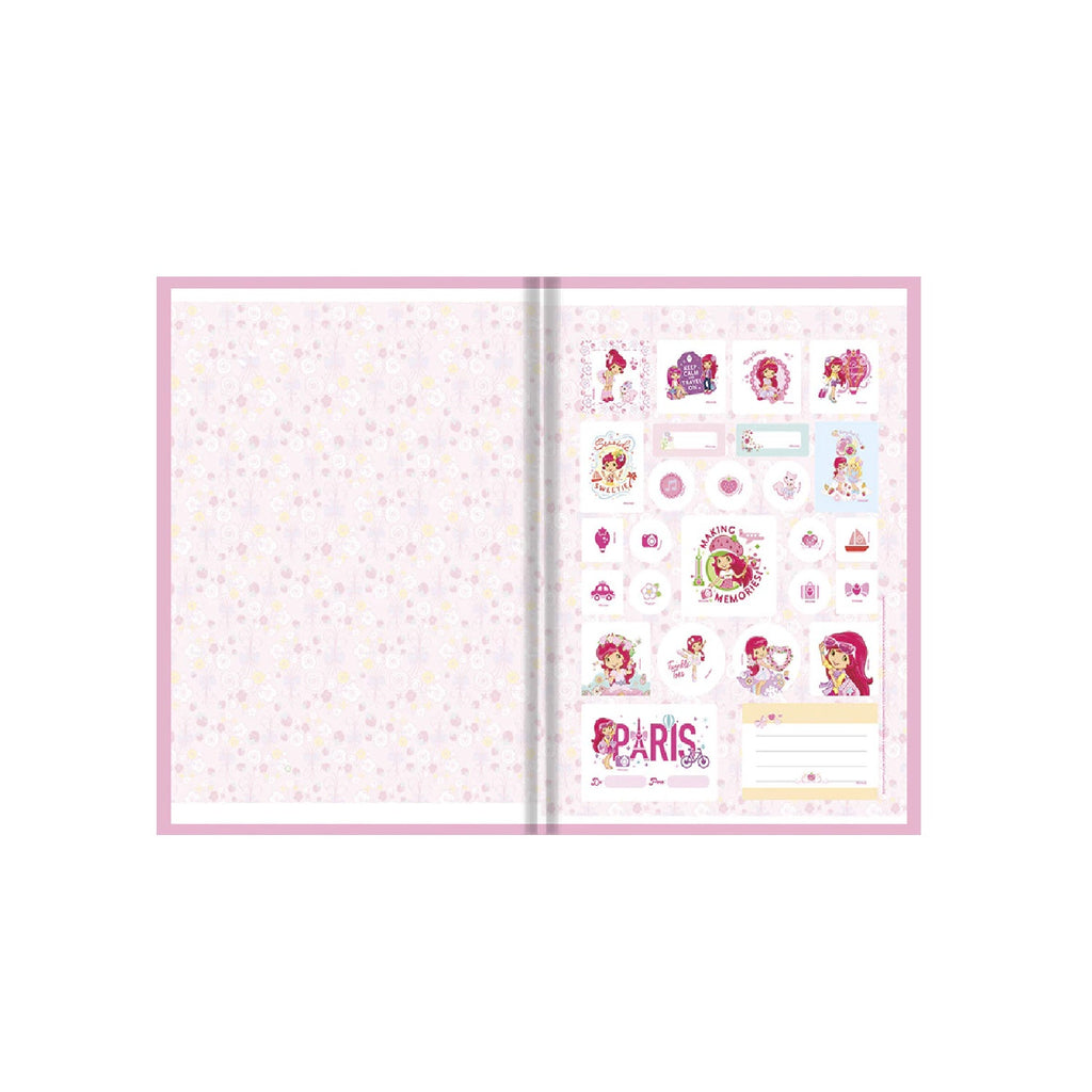 Caderno Costurado com 80 folhas pautadas, com gramatura 56 g/m² e cartela de adesivos dupla
