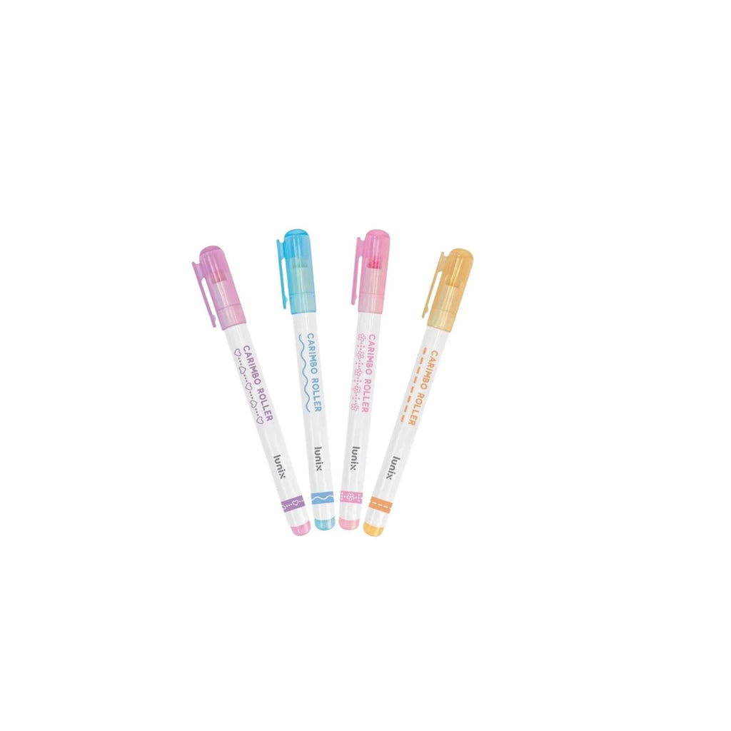 Carimbo Roller Lunix - Tilibra Carimbo em forma de caneta, ponta roller. Nas seguintes cores: Azul - Ondinhas Rosa - Flor Lilás - Coração Laranja - Tracejado Observação: vendidos individualmente, selecione a(s) cor(es) desejadas