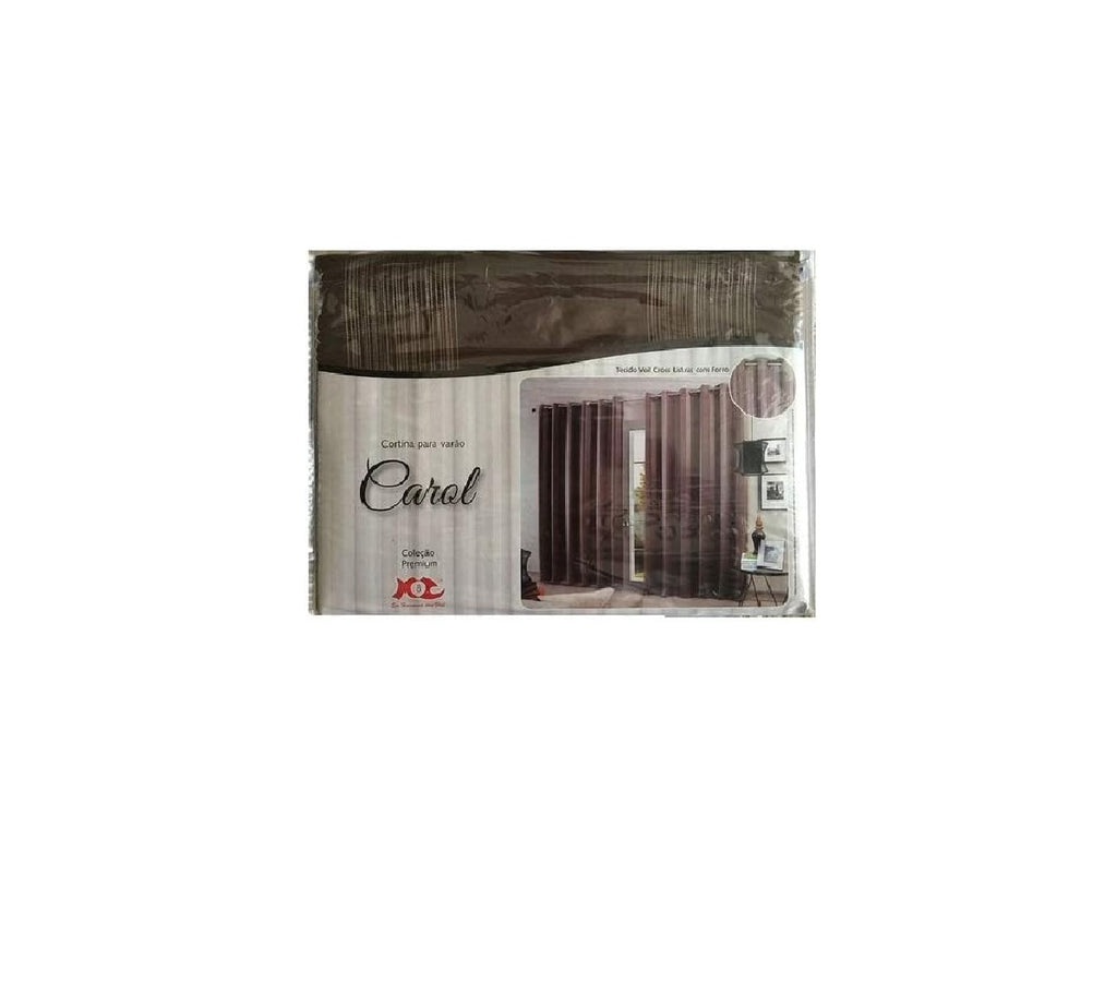 A Cortina Carol é uma cortina para sala, quarto ou escritório trabalhada em tecido voil com listras com um forro de poliéster formando uma camada dupla para diminuir a luminosidade externa. O consumo total de largura dessa cortina completamente esticada é de 4 metros (2,00 metros em cada parte), ideal para criar um excelente franzimento para varões até 3,20m. A altura dessa cortina é de 2,60 metros e serve para cobrir janelas e portas. Possui também ilhoses cromados que aumentam a elegância dessa cortina.